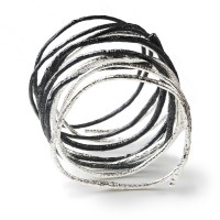 Emanuela Duca’s jewelry possesses a raw, elemental beauty: primitive and sophisticated, substantial yet delicate. Her blackened sterling silver pieces, with their rugged surfaces and irregular edges, resemble small sculptural volcanoes. This rawness is accentuated with precious gemstones, diamonds in the rough, and the fire of 18 karat gold. With a fresh approach to modernism, her jewelry embraces femininity, encompassing strength as well as vulnerability.