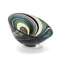 “My main concern in my work is to fully realize the transparent aspect of the glass. Each piece is one of a kind, but the thread that runs through the entire body of work is the combination of color, pattern and texture as one looks through each piece. In this way, each piece becomes an interactive part of its environment, dependent upon light and perception.”